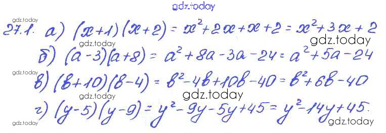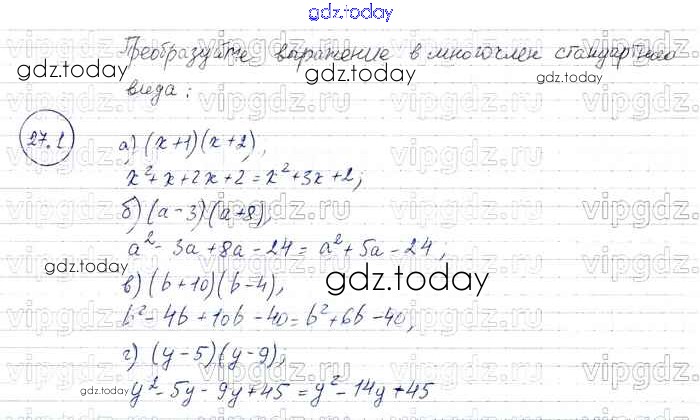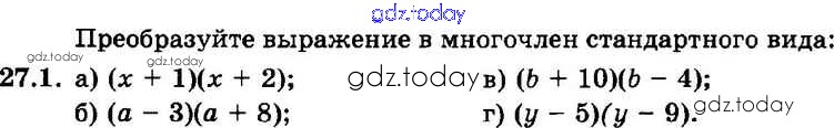 На страницах сайта gdz.today вы найдете учебный и вспомогательный материал, направленный на улучшения знаний школьной программы. ГДЗ - онлайн мир знаний § 27. Умножение многочлена на многочлен Решение к главе 6 1 Задачнику по Алгебре для 7 класса Мордкович, Александрова Базовый уровень Мнемозина 2013