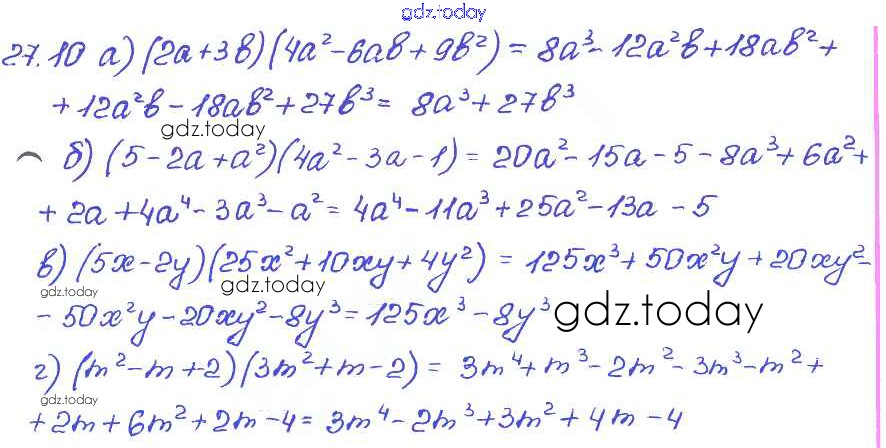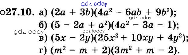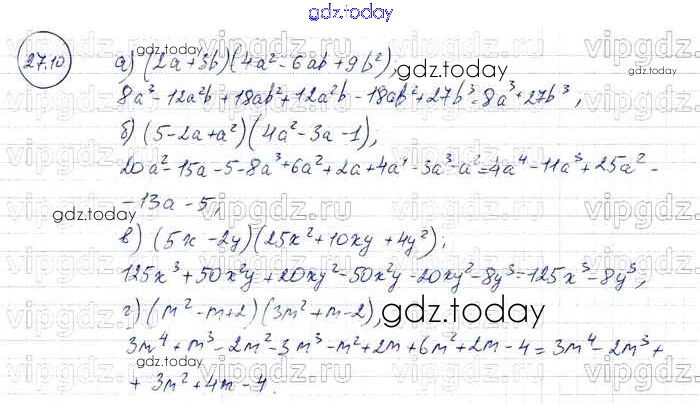 На страницах сайта gdz.today вы найдете учебный и вспомогательный материал, направленный на улучшения знаний школьной программы. ГДЗ - онлайн мир знаний § 27. Умножение многочлена на многочлен Решение к главе 6 10 Задачнику по Алгебре для 7 класса Мордкович, Александрова Базовый уровень Мнемозина 2013