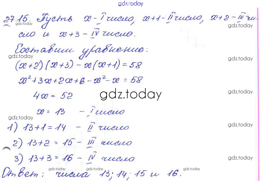 Ответы к § 27. Умножение многочлена на многочлен Решение к главе 6 15 Задачнику по Алгебре для 7 класса Мордкович, Александрова Базовый уровень Мнемозина 2013