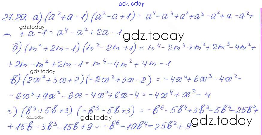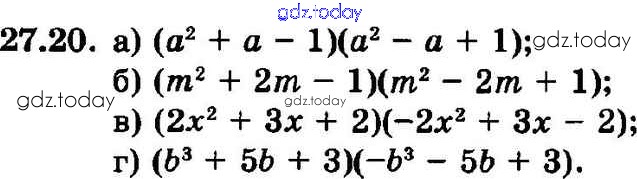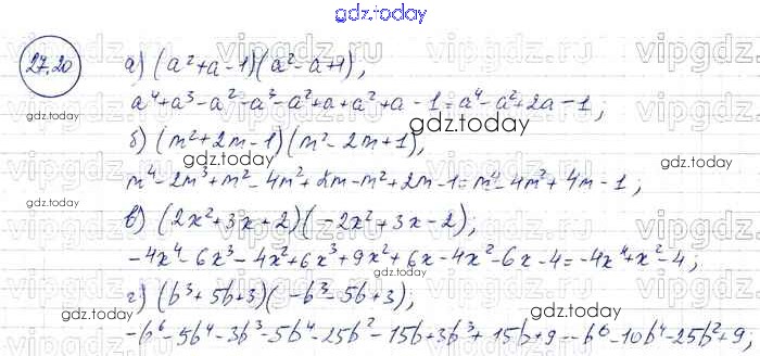 Ответы к § 27. Умножение многочлена на многочлен Решение к главе 6 20 Задачнику по Алгебре для 7 класса Мордкович, Александрова Базовый уровень Мнемозина 2013