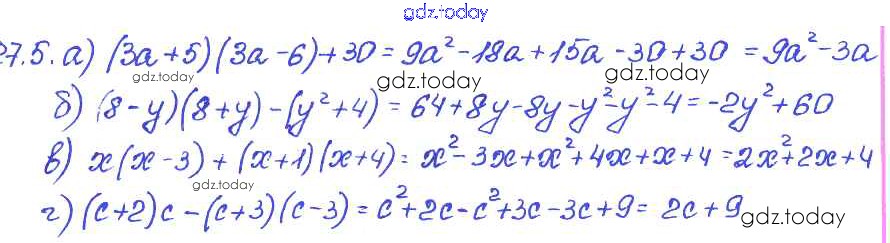 На страницах сайта gdz.today вы найдете учебный и вспомогательный материал, направленный на улучшения знаний школьной программы. ГДЗ - онлайн мир знаний § 27. Умножение многочлена на многочлен Решение к главе 6 5 Задачнику по Алгебре для 7 класса Мордкович, Александрова Базовый уровень Мнемозина 2013