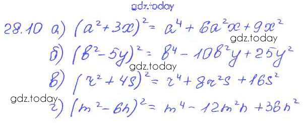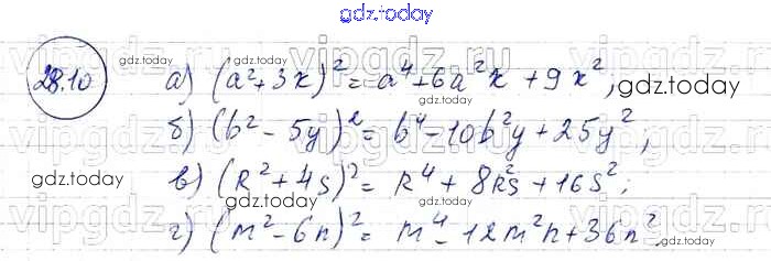 Ответы к § 28. Формулы сокращенного умножения Решение к главе 6 10 Задачнику по Алгебре для 7 класса Мордкович, Александрова Базовый уровень Мнемозина 2013
