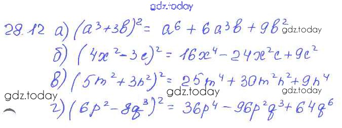 На страницах сайта gdz.today вы найдете учебный и вспомогательный материал, направленный на улучшения знаний школьной программы. ГДЗ - онлайн мир знаний § 28. Формулы сокращенного умножения Решение к главе 6 12 Задачнику по Алгебре для 7 класса Мордкович, Александрова Базовый уровень Мнемозина 2013