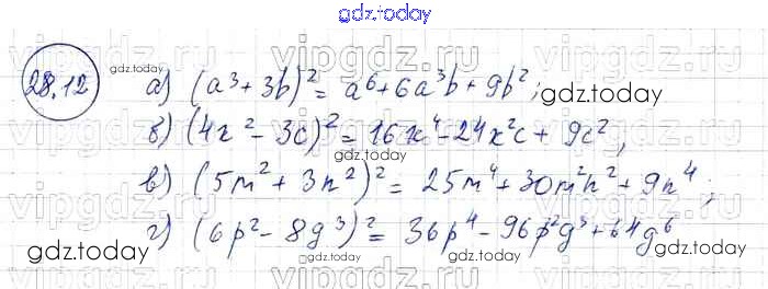 Ответы к § 28. Формулы сокращенного умножения Решение к главе 6 12 Задачнику по Алгебре для 7 класса Мордкович, Александрова Базовый уровень Мнемозина 2013