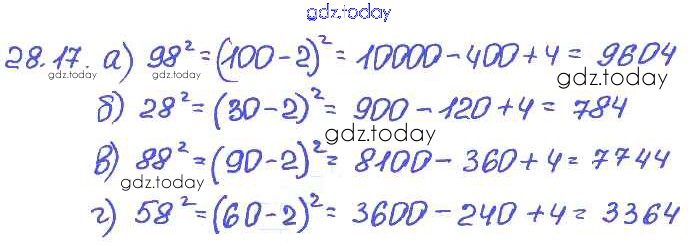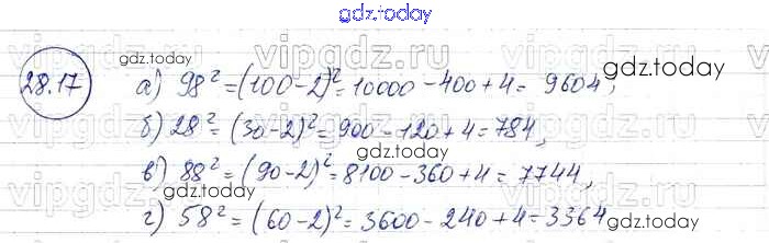 Ответы к § 28. Формулы сокращенного умножения Решение к главе 6 17 Задачнику по Алгебре для 7 класса Мордкович, Александрова Базовый уровень Мнемозина 2013