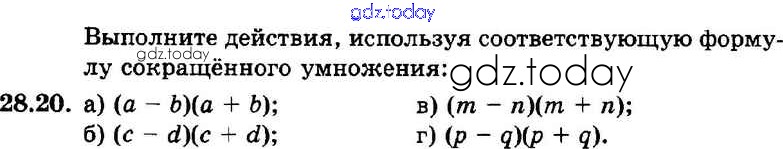 На страницах сайта gdz.today вы найдете учебный и вспомогательный материал, направленный на улучшения знаний школьной программы. ГДЗ - онлайн мир знаний § 28. Формулы сокращенного умножения Решение к главе 6 20 Задачнику по Алгебре для 7 класса Мордкович, Александрова Базовый уровень Мнемозина 2013