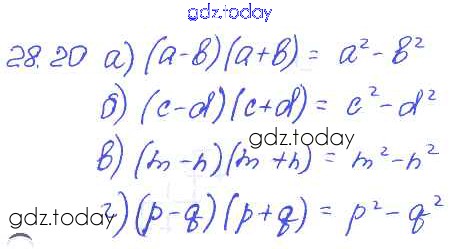 Ответы к § 28. Формулы сокращенного умножения Решение к главе 6 20 Задачнику по Алгебре для 7 класса Мордкович, Александрова Базовый уровень Мнемозина 2013