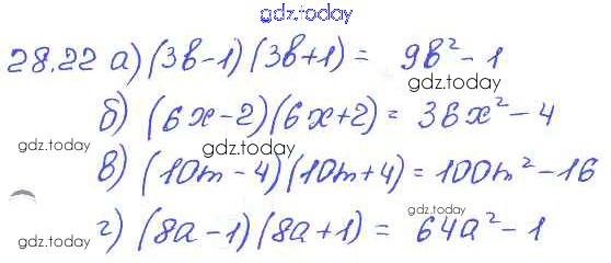 На страницах сайта gdz.today вы найдете учебный и вспомогательный материал, направленный на улучшения знаний школьной программы. ГДЗ - онлайн мир знаний § 28. Формулы сокращенного умножения Решение к главе 6 22 Задачнику по Алгебре для 7 класса Мордкович, Александрова Базовый уровень Мнемозина 2013