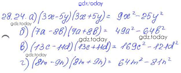 Ответы к § 28. Формулы сокращенного умножения Решение к главе 6 24 Задачнику по Алгебре для 7 класса Мордкович, Александрова Базовый уровень Мнемозина 2013