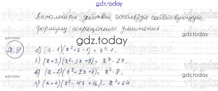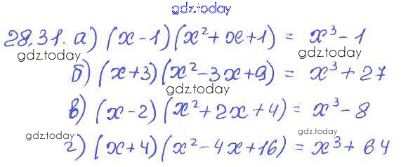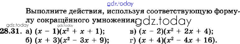 На страницах сайта gdz.today вы найдете учебный и вспомогательный материал, направленный на улучшения знаний школьной программы. ГДЗ - онлайн мир знаний § 28. Формулы сокращенного умножения Решение к главе 6 31 Задачнику по Алгебре для 7 класса Мордкович, Александрова Базовый уровень Мнемозина 2013
