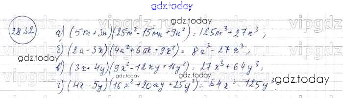 Ответы к § 28. Формулы сокращенного умножения Решение к главе 6 32 Задачнику по Алгебре для 7 класса Мордкович, Александрова Базовый уровень Мнемозина 2013
