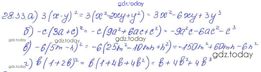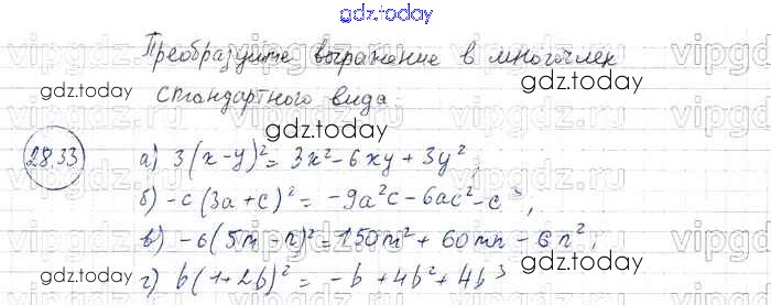 На страницах сайта gdz.today вы найдете учебный и вспомогательный материал, направленный на улучшения знаний школьной программы. ГДЗ - онлайн мир знаний § 28. Формулы сокращенного умножения Решение к главе 6 33 Задачнику по Алгебре для 7 класса Мордкович, Александрова Базовый уровень Мнемозина 2013