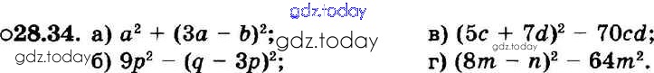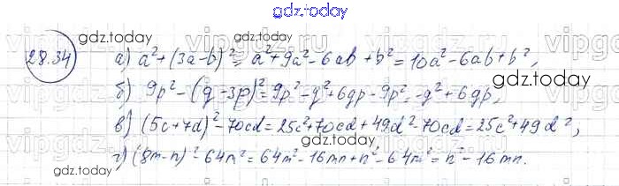 Ответы к § 28. Формулы сокращенного умножения Решение к главе 6 34 Задачнику по Алгебре для 7 класса Мордкович, Александрова Базовый уровень Мнемозина 2013