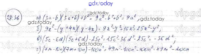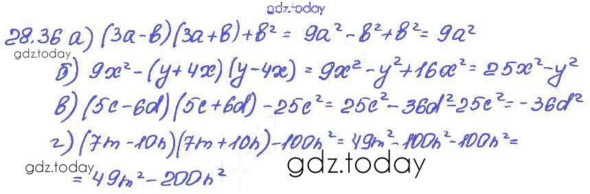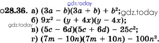Ответы к § 28. Формулы сокращенного умножения Решение к главе 6 36 Задачнику по Алгебре для 7 класса Мордкович, Александрова Базовый уровень Мнемозина 2013