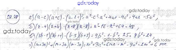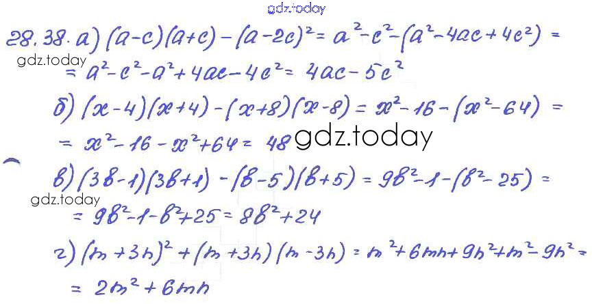 Ответы к § 28. Формулы сокращенного умножения Решение к главе 6 38 Задачнику по Алгебре для 7 класса Мордкович, Александрова Базовый уровень Мнемозина 2013