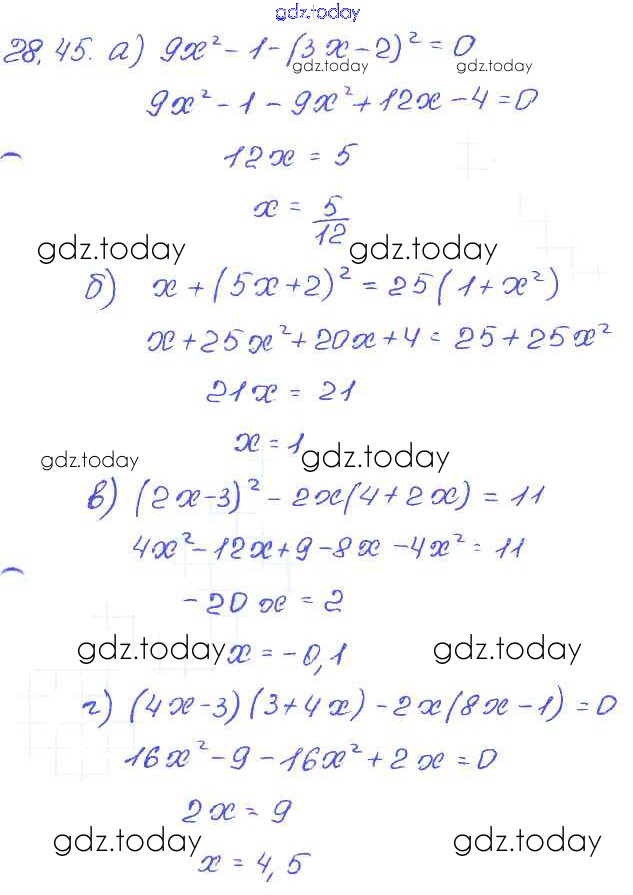 На страницах сайта gdz.today вы найдете учебный и вспомогательный материал, направленный на улучшения знаний школьной программы. ГДЗ - онлайн мир знаний § 28. Формулы сокращенного умножения Решение к главе 6 45 Задачнику по Алгебре для 7 класса Мордкович, Александрова Базовый уровень Мнемозина 2013