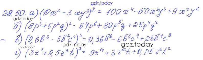 Ответы к § 28. Формулы сокращенного умножения Решение к главе 6 50 Задачнику по Алгебре для 7 класса Мордкович, Александрова Базовый уровень Мнемозина 2013