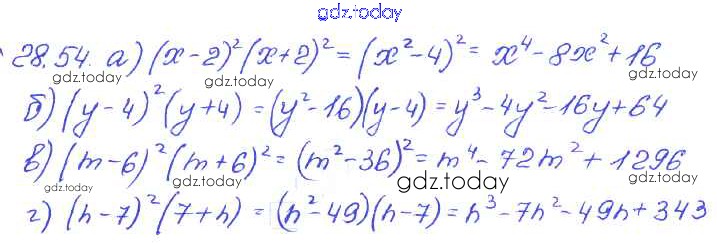 На страницах сайта gdz.today вы найдете учебный и вспомогательный материал, направленный на улучшения знаний школьной программы. ГДЗ - онлайн мир знаний § 28. Формулы сокращенного умножения Решение к главе 6 54 Задачнику по Алгебре для 7 класса Мордкович, Александрова Базовый уровень Мнемозина 2013