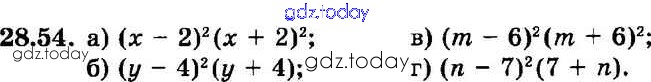 Ответы к § 28. Формулы сокращенного умножения Решение к главе 6 54 Задачнику по Алгебре для 7 класса Мордкович, Александрова Базовый уровень Мнемозина 2013
