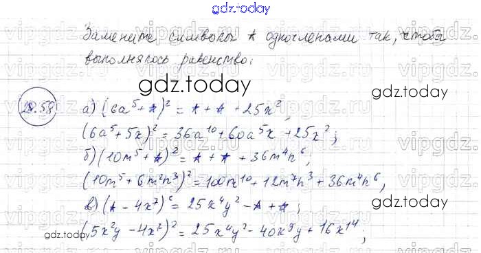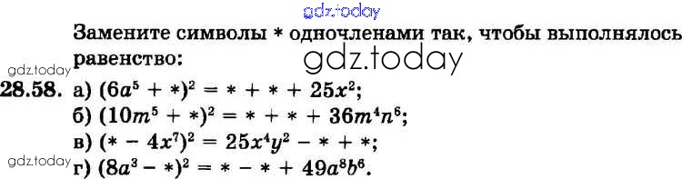 На страницах сайта gdz.today вы найдете учебный и вспомогательный материал, направленный на улучшения знаний школьной программы. ГДЗ - онлайн мир знаний § 28. Формулы сокращенного умножения Решение к главе 6 58 Задачнику по Алгебре для 7 класса Мордкович, Александрова Базовый уровень Мнемозина 2013