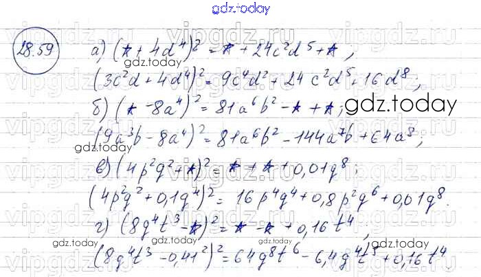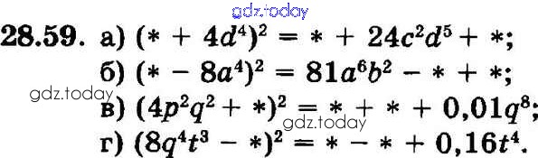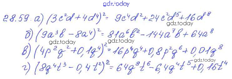 На страницах сайта gdz.today вы найдете учебный и вспомогательный материал, направленный на улучшения знаний школьной программы. ГДЗ - онлайн мир знаний § 28. Формулы сокращенного умножения Решение к главе 6 59 Задачнику по Алгебре для 7 класса Мордкович, Александрова Базовый уровень Мнемозина 2013