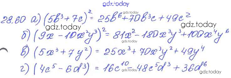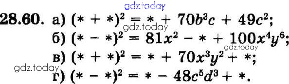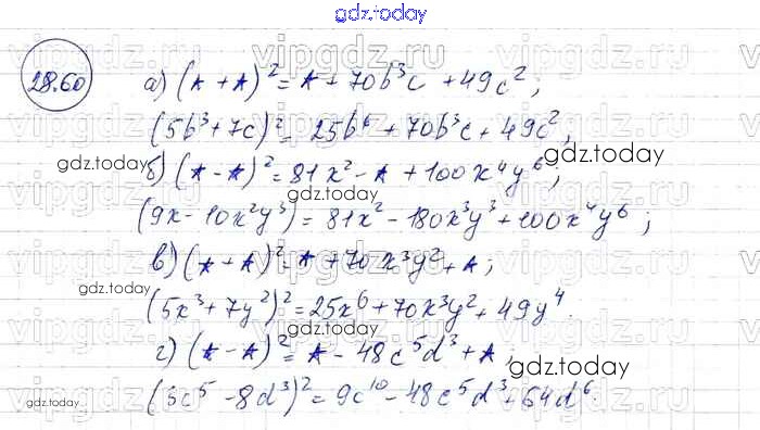 На страницах сайта gdz.today вы найдете учебный и вспомогательный материал, направленный на улучшения знаний школьной программы. ГДЗ - онлайн мир знаний § 28. Формулы сокращенного умножения Решение к главе 6 60 Задачнику по Алгебре для 7 класса Мордкович, Александрова Базовый уровень Мнемозина 2013