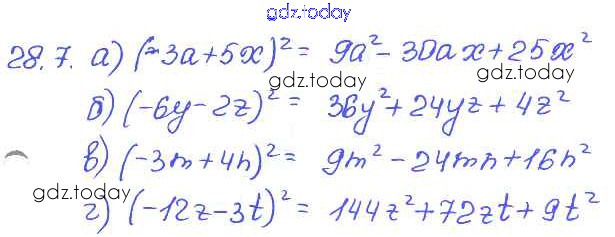 На страницах сайта gdz.today вы найдете учебный и вспомогательный материал, направленный на улучшения знаний школьной программы. ГДЗ - онлайн мир знаний § 28. Формулы сокращенного умножения Решение к главе 6 7 Задачнику по Алгебре для 7 класса Мордкович, Александрова Базовый уровень Мнемозина 2013
