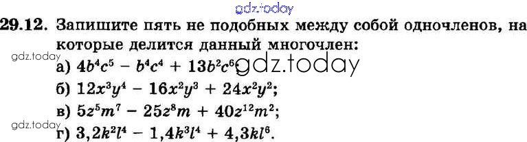 На страницах сайта gdz.today вы найдете учебный и вспомогательный материал, направленный на улучшения знаний школьной программы. ГДЗ - онлайн мир знаний § 29. Деление многочлена на одночлен Решение к главе 6 12 Задачнику по Алгебре для 7 класса Мордкович, Александрова Базовый уровень Мнемозина 2013