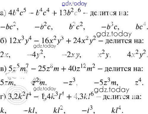 Ответы к § 29. Деление многочлена на одночлен Решение к главе 6 12 Задачнику по Алгебре для 7 класса Мордкович, Александрова Базовый уровень Мнемозина 2013