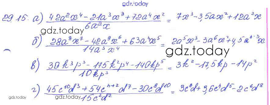 На страницах сайта gdz.today вы найдете учебный и вспомогательный материал, направленный на улучшения знаний школьной программы. ГДЗ - онлайн мир знаний § 29. Деление многочлена на одночлен Решение к главе 6 15 Задачнику по Алгебре для 7 класса Мордкович, Александрова Базовый уровень Мнемозина 2013