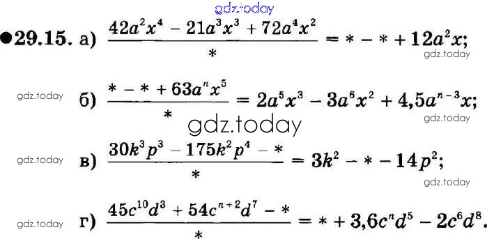 Ответы к § 29. Деление многочлена на одночлен Решение к главе 6 15 Задачнику по Алгебре для 7 класса Мордкович, Александрова Базовый уровень Мнемозина 2013