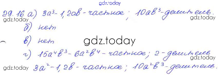 Ответы к § 29. Деление многочлена на одночлен Решение к главе 6 16 Задачнику по Алгебре для 7 класса Мордкович, Александрова Базовый уровень Мнемозина 2013