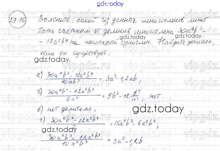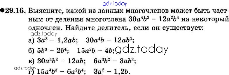 На страницах сайта gdz.today вы найдете учебный и вспомогательный материал, направленный на улучшения знаний школьной программы. ГДЗ - онлайн мир знаний § 29. Деление многочлена на одночлен Решение к главе 6 16 Задачнику по Алгебре для 7 класса Мордкович, Александрова Базовый уровень Мнемозина 2013