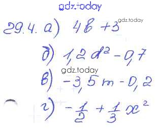 Ответы к § 29. Деление многочлена на одночлен Решение к главе 6 4 Задачнику по Алгебре для 7 класса Мордкович, Александрова Базовый уровень Мнемозина 2013