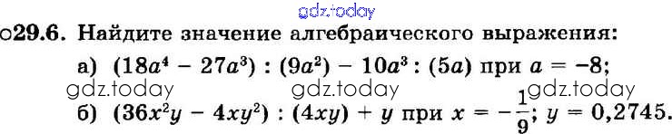 Ответы к § 29. Деление многочлена на одночлен Решение к главе 6 6 Задачнику по Алгебре для 7 класса Мордкович, Александрова Базовый уровень Мнемозина 2013