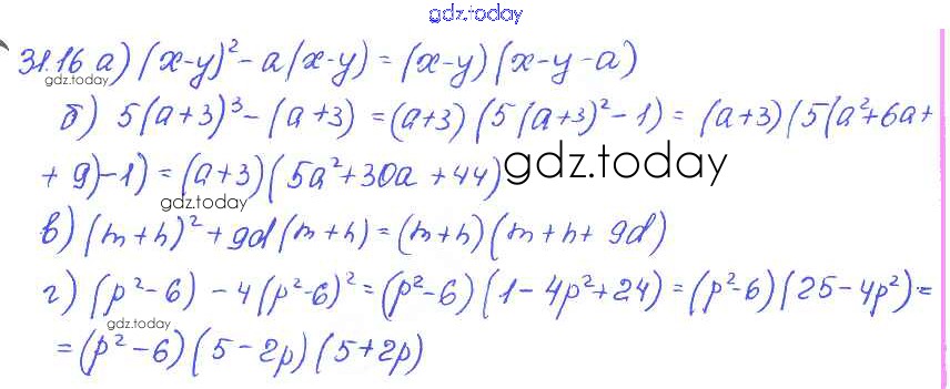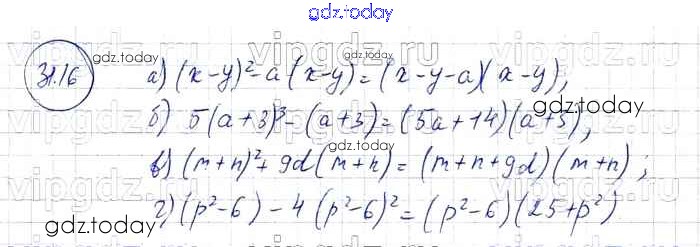 На страницах сайта gdz.today вы найдете учебный и вспомогательный материал, направленный на улучшения знаний школьной программы. ГДЗ - онлайн мир знаний § 31. Вынесение общего множителя за скобки Решение к главе 7 16 Задачнику по Алгебре для 7 класса Мордкович, Александрова Базовый уровень Мнемозина 2013