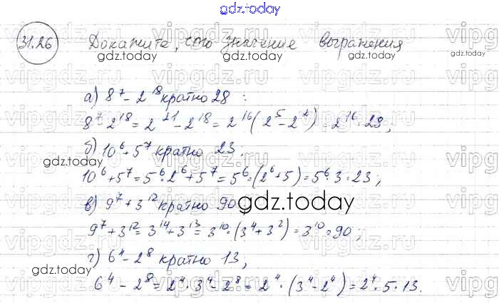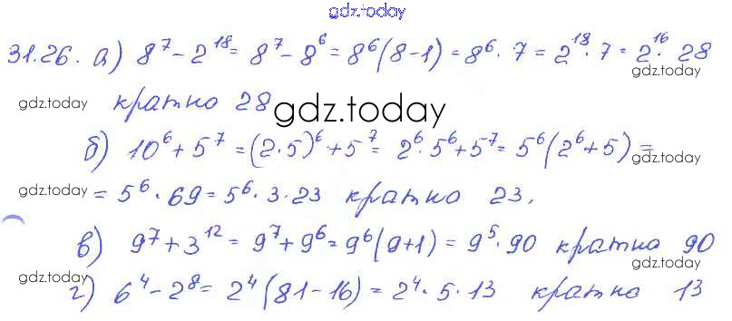 Ответы к § 31. Вынесение общего множителя за скобки Решение к главе 7 26 Задачнику по Алгебре для 7 класса Мордкович, Александрова Базовый уровень Мнемозина 2013