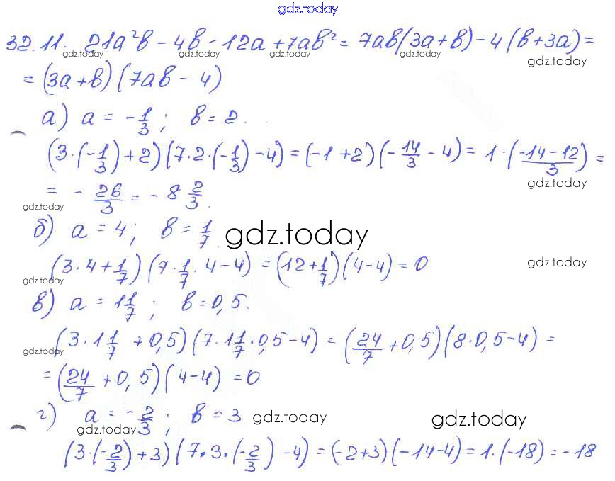 Ответы к § 32. Способ группировки Решение к главе 7 11 Задачнику по Алгебре для 7 класса Мордкович, Александрова Базовый уровень Мнемозина 2013