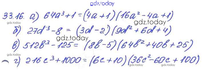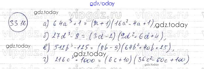 На страницах сайта gdz.today вы найдете учебный и вспомогательный материал, направленный на улучшения знаний школьной программы. ГДЗ - онлайн мир знаний § 33. Разложение многочленов на множители с помощью формул сокращенного умножения Решение к главе 7 16 Задачнику по Алгебре для 7 класса Мордкович, Александрова Базовый уровень Мнемозина 2013
