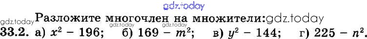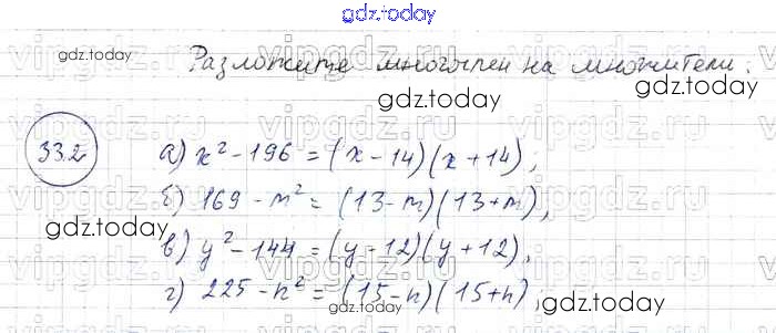 На страницах сайта gdz.today вы найдете учебный и вспомогательный материал, направленный на улучшения знаний школьной программы. ГДЗ - онлайн мир знаний § 33. Разложение многочленов на множители с помощью формул сокращенного умножения Решение к главе 7 2 Задачнику по Алгебре для 7 класса Мордкович, Александрова Базовый уровень Мнемозина 2013