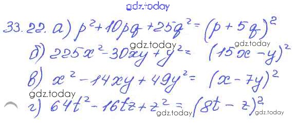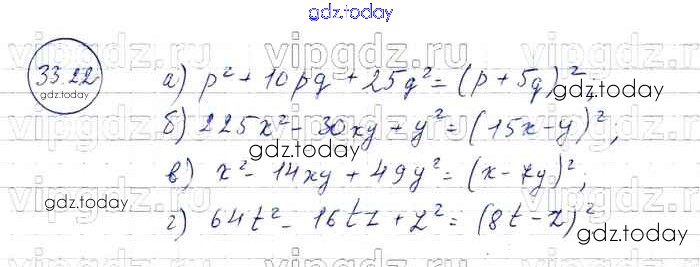 Ответы к § 33. Разложение многочленов на множители с помощью формул сокращенного умножения Решение к главе 7 22 Задачнику по Алгебре для 7 класса Мордкович, Александрова Базовый уровень Мнемозина 2013
