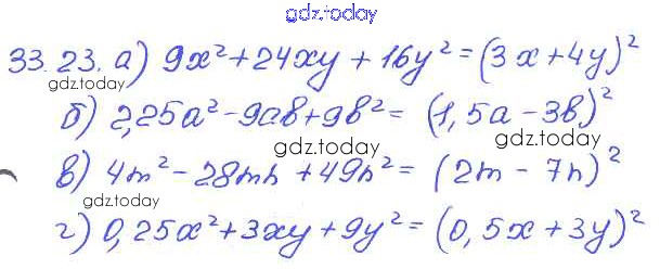 На страницах сайта gdz.today вы найдете учебный и вспомогательный материал, направленный на улучшения знаний школьной программы. ГДЗ - онлайн мир знаний § 33. Разложение многочленов на множители с помощью формул сокращенного умножения Решение к главе 7 23 Задачнику по Алгебре для 7 класса Мордкович, Александрова Базовый уровень Мнемозина 2013
