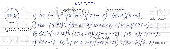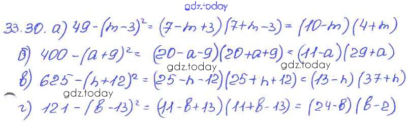 Ответы к § 33. Разложение многочленов на множители с помощью формул сокращенного умножения Решение к главе 7 30 Задачнику по Алгебре для 7 класса Мордкович, Александрова Базовый уровень Мнемозина 2013