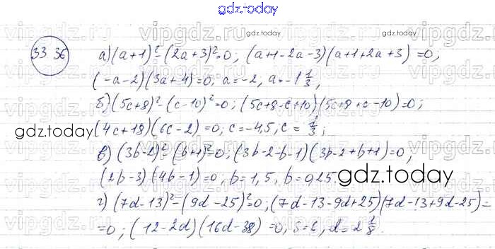 Ответы к § 33. Разложение многочленов на множители с помощью формул сокращенного умножения Решение к главе 7 36 Задачнику по Алгебре для 7 класса Мордкович, Александрова Базовый уровень Мнемозина 2013