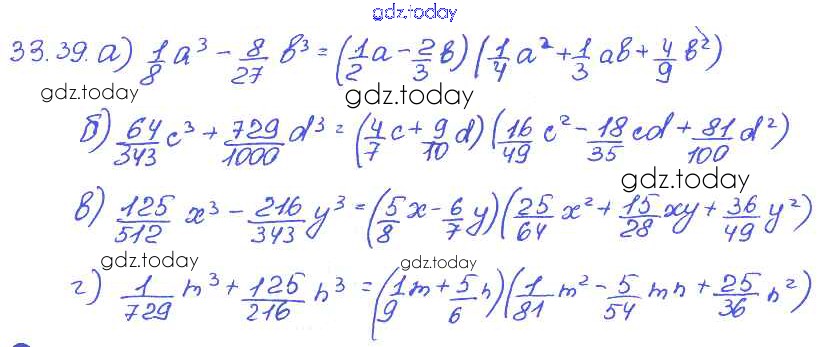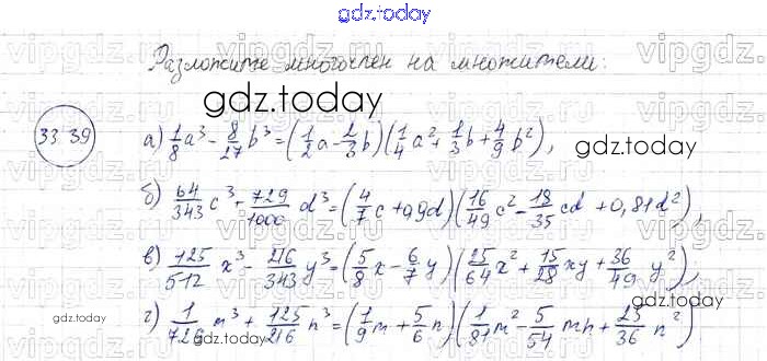 Ответы к § 33. Разложение многочленов на множители с помощью формул сокращенного умножения Решение к главе 7 39 Задачнику по Алгебре для 7 класса Мордкович, Александрова Базовый уровень Мнемозина 2013