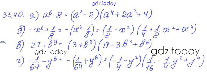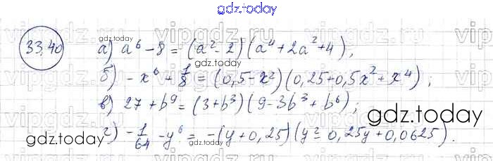 Ответы к § 33. Разложение многочленов на множители с помощью формул сокращенного умножения Решение к главе 7 40 Задачнику по Алгебре для 7 класса Мордкович, Александрова Базовый уровень Мнемозина 2013