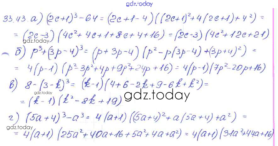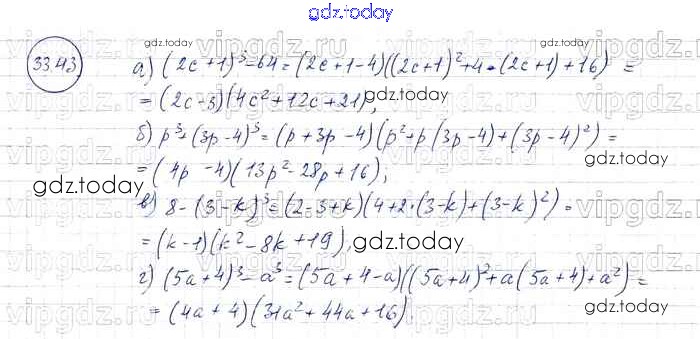 Ответы к § 33. Разложение многочленов на множители с помощью формул сокращенного умножения Решение к главе 7 43 Задачнику по Алгебре для 7 класса Мордкович, Александрова Базовый уровень Мнемозина 2013