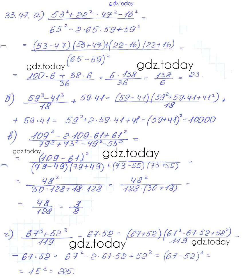 Ответы к § 33. Разложение многочленов на множители с помощью формул сокращенного умножения Решение к главе 7 47 Задачнику по Алгебре для 7 класса Мордкович, Александрова Базовый уровень Мнемозина 2013