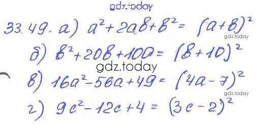Ответы к § 33. Разложение многочленов на множители с помощью формул сокращенного умножения Решение к главе 7 49 Задачнику по Алгебре для 7 класса Мордкович, Александрова Базовый уровень Мнемозина 2013