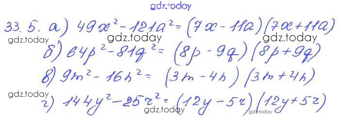 На страницах сайта gdz.today вы найдете учебный и вспомогательный материал, направленный на улучшения знаний школьной программы. ГДЗ - онлайн мир знаний § 33. Разложение многочленов на множители с помощью формул сокращенного умножения Решение к главе 7 5 Задачнику по Алгебре для 7 класса Мордкович, Александрова Базовый уровень Мнемозина 2013